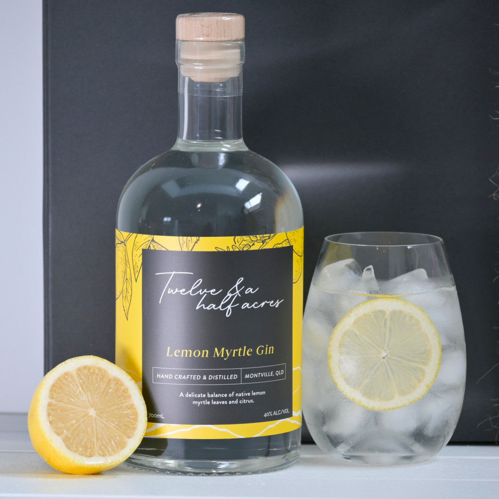 Discover the exquisite taste of Lemon Myrtle Gin by Twelve & a Half Acres, a local Maleny Distillery. This premium gin boasts the distinctive, aromatic notes of lemon myrtle, harmoniously balanced with botanicals. Each sip offers a refreshing burst of citrus, making it a perfect choice for gin connoisseurs and cocktail aficionados. Ideal for gifting or elevating your evening ritual with a touch of local craftsmanship.
